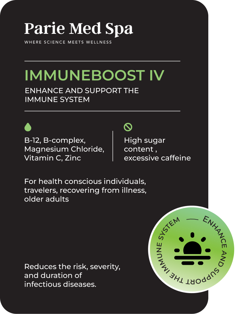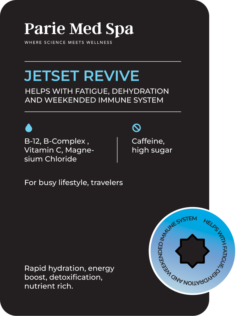 All IV drips at Parie MedSpa are formulated with pharmaceutical-grade ingredients and administered by licensed RNs in a safe, clinical environment.